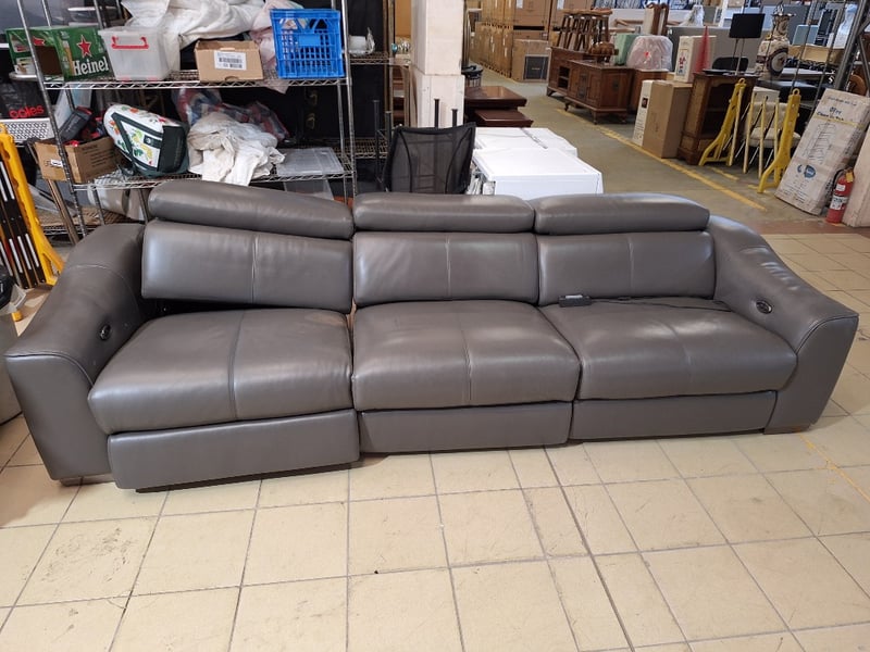 3-Seater Recliner Sofa, Leather Style, Brown Finish Dimensions H:76cm W:300cm D:100cm