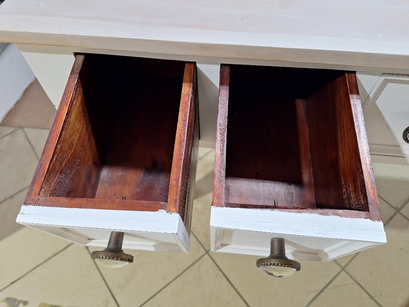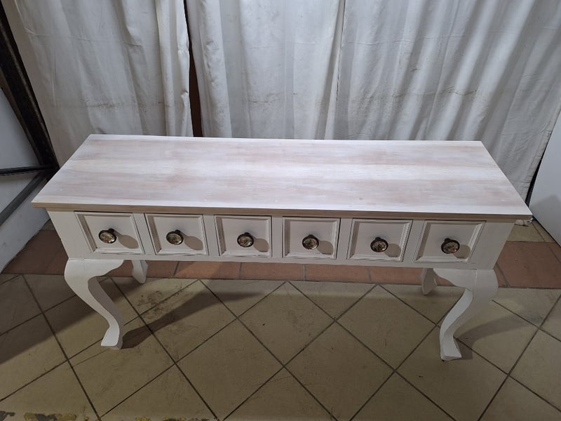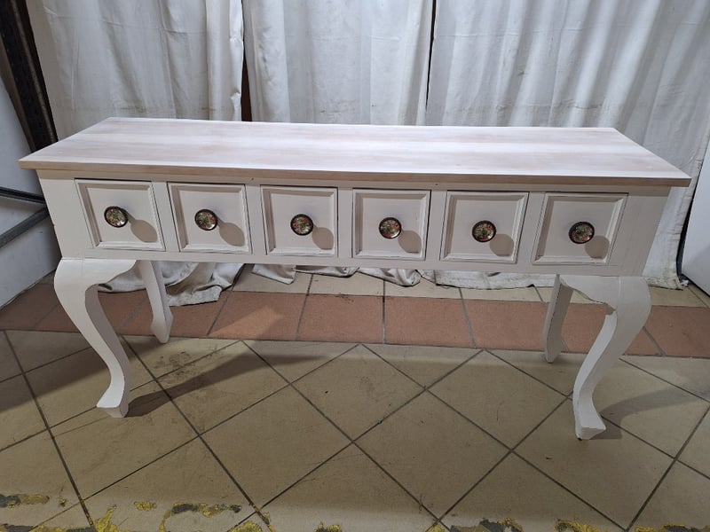 Console Table With 6 Drawers & Decorative Knobs, Timber Style, Natural Finish