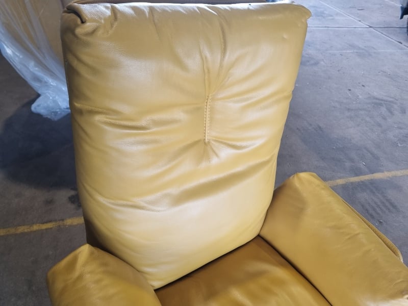 A timeless living room staple, savour sink-in comfort with the Vida Leather Recliner & Footstool. Upholstered in smooth leather, feather and foam-filled cushions invite you to unwind, while the included footstool allows you to easily find your perfect position. Supported by durable timber framing and a sleek metal base, revel in the ultimate combination of luxury and longevity.