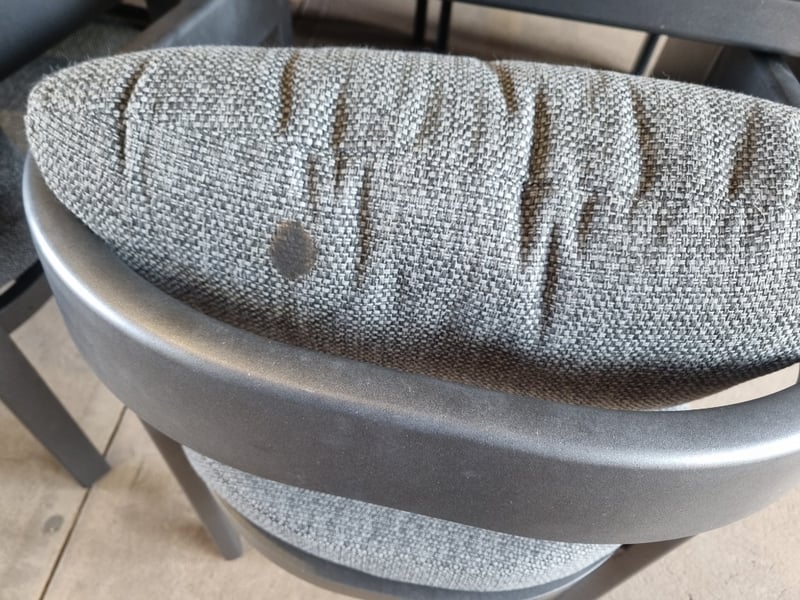 Polyester fabric upholstery offers a resilient weather, water and UV-resistant cushion covering.