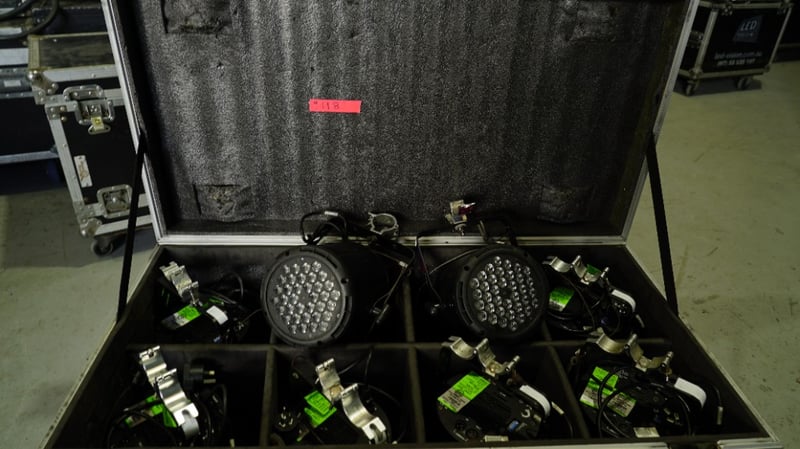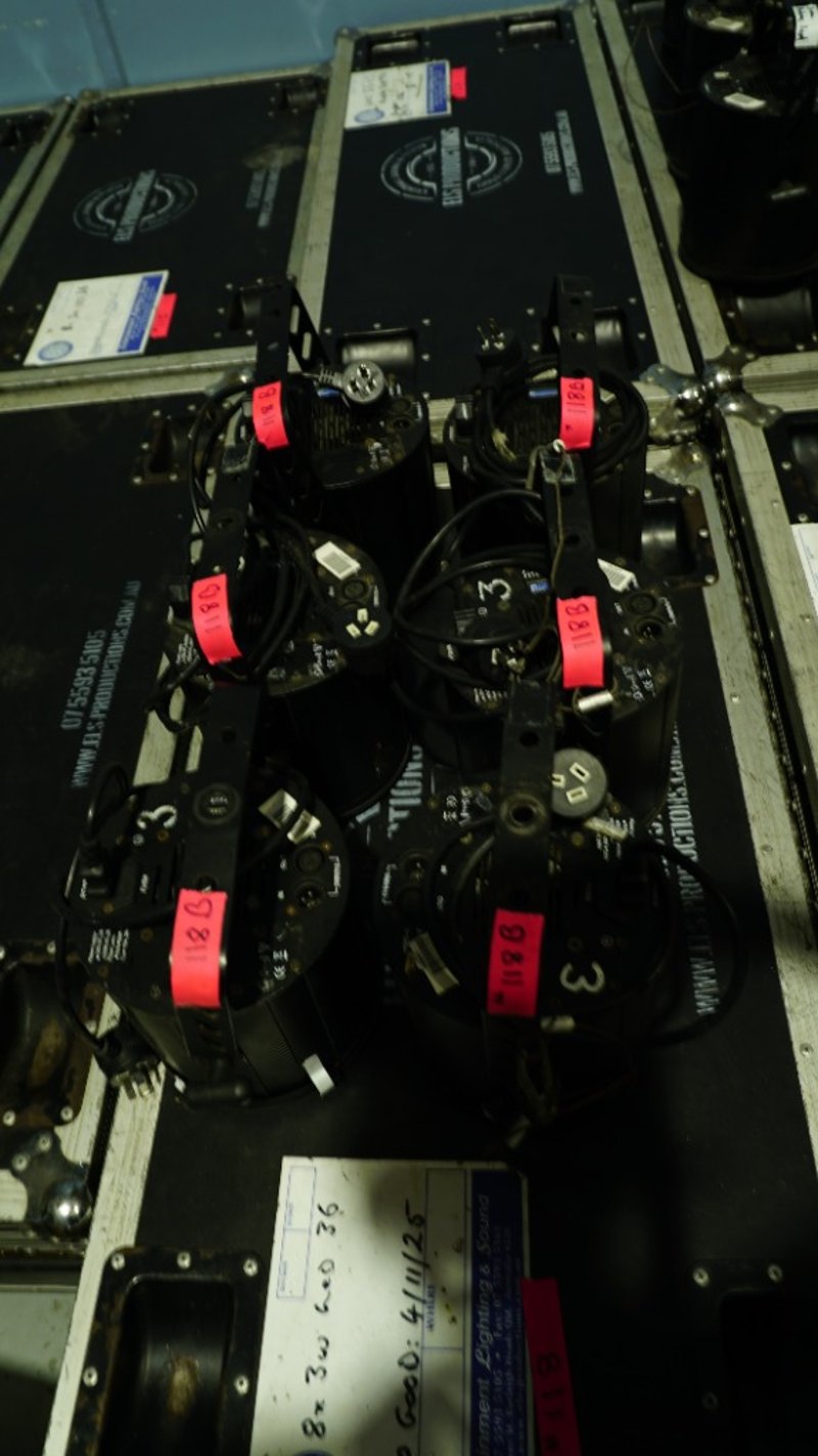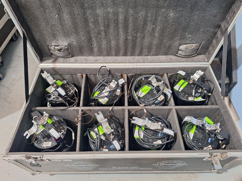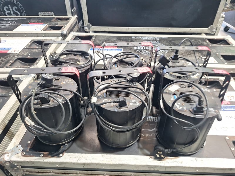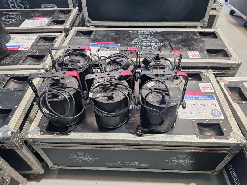 14x Ying Wei LED 36 3w In Case Doughty Mini Clamp, IEC Leads, 6x without doughty and Loose Good Working Condition Sold As Lot