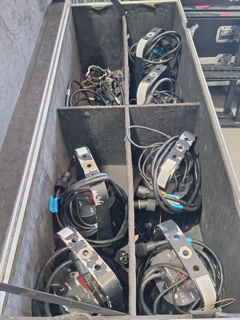 8x Ying Wei LED 36 city Colours 45 degree IP Rated Par, 8x 240v adapters Fair Working Condition Sold as Lot