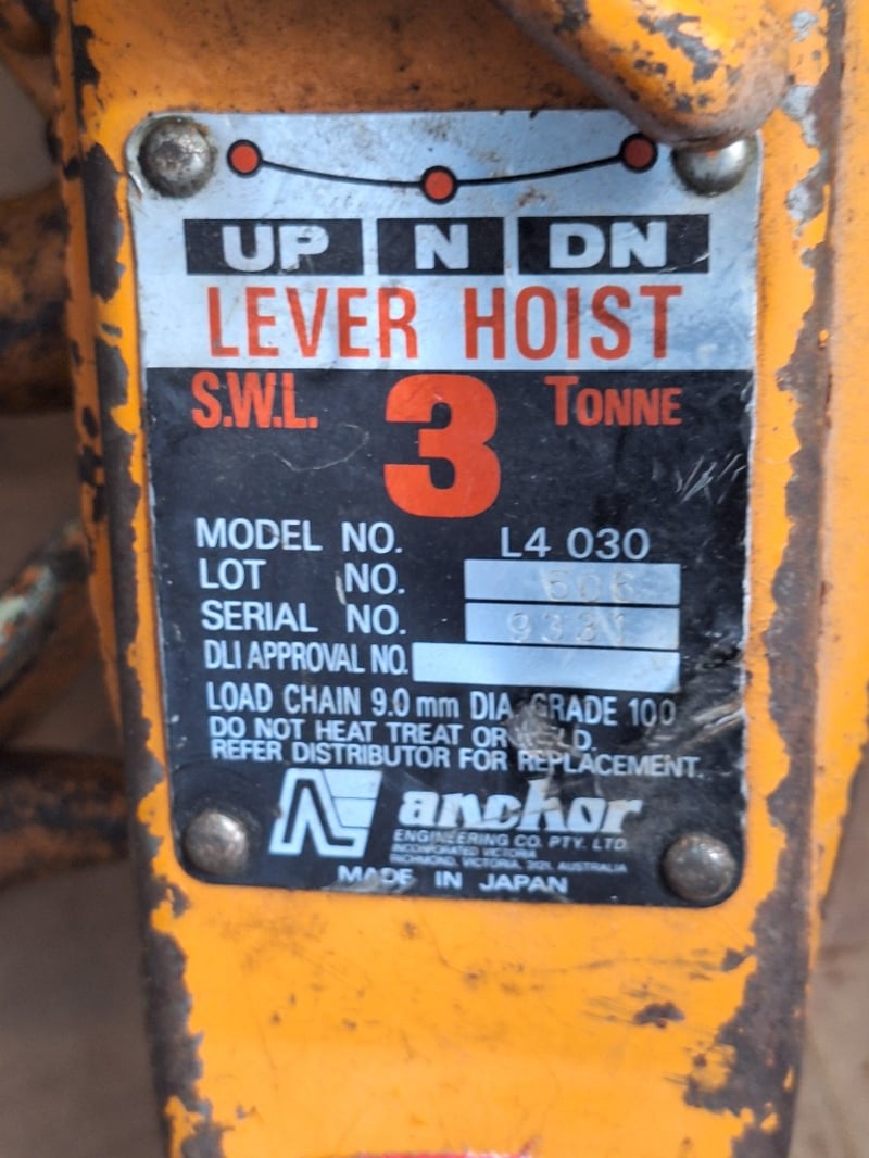 Anchor engerneried 3 tonne lever hoist