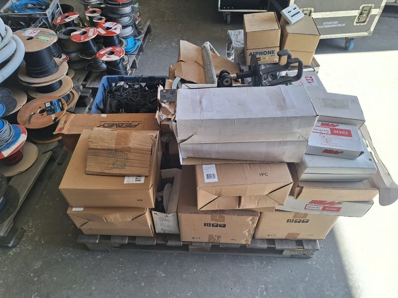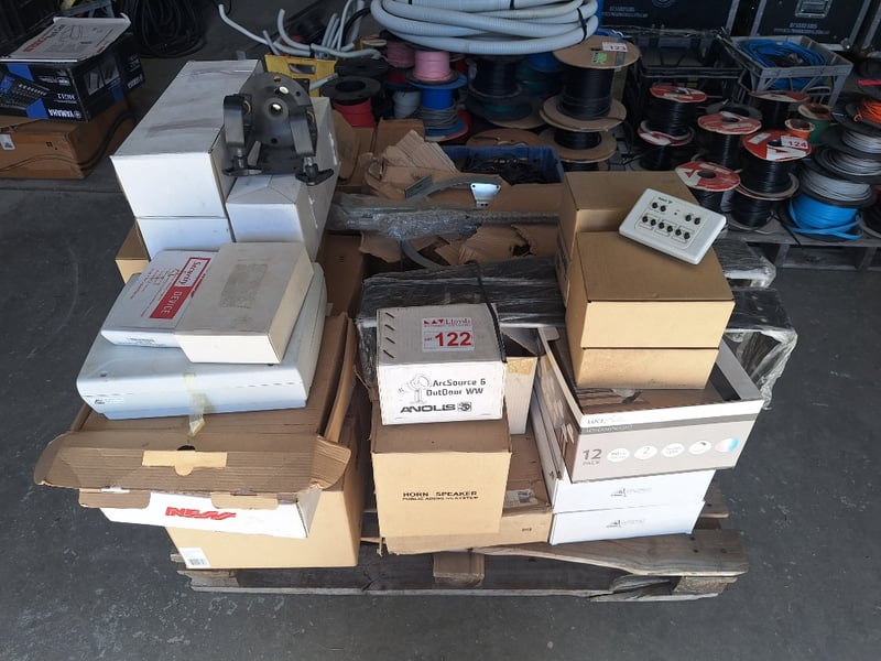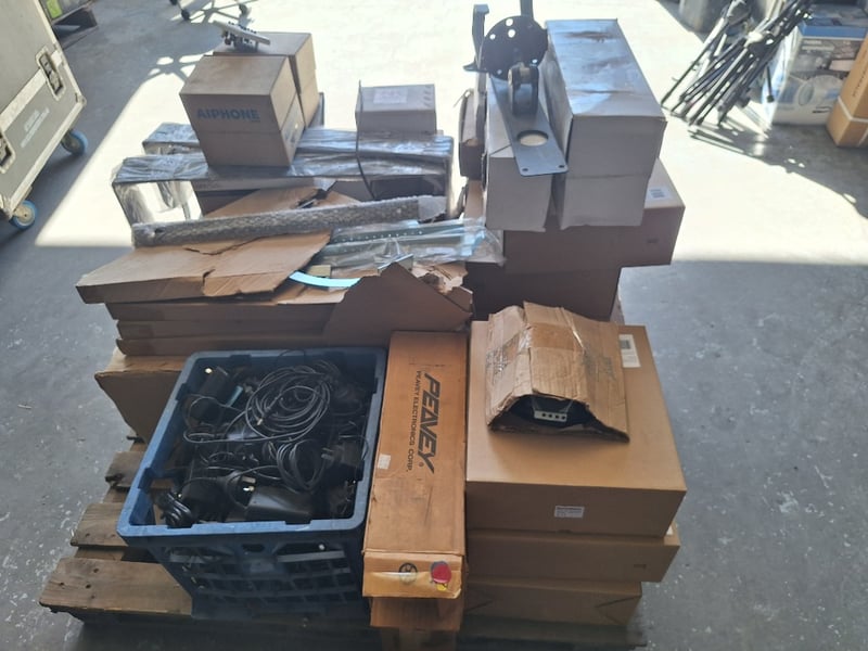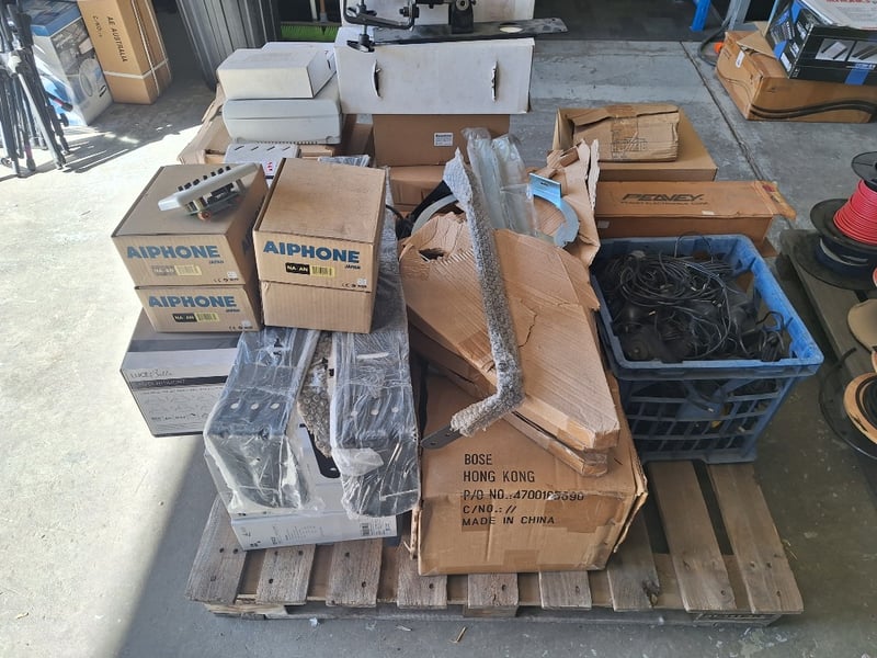 1 Pallet Of Celling Speakers, Speaker brackets, Box Of Assoterd Power Transformers