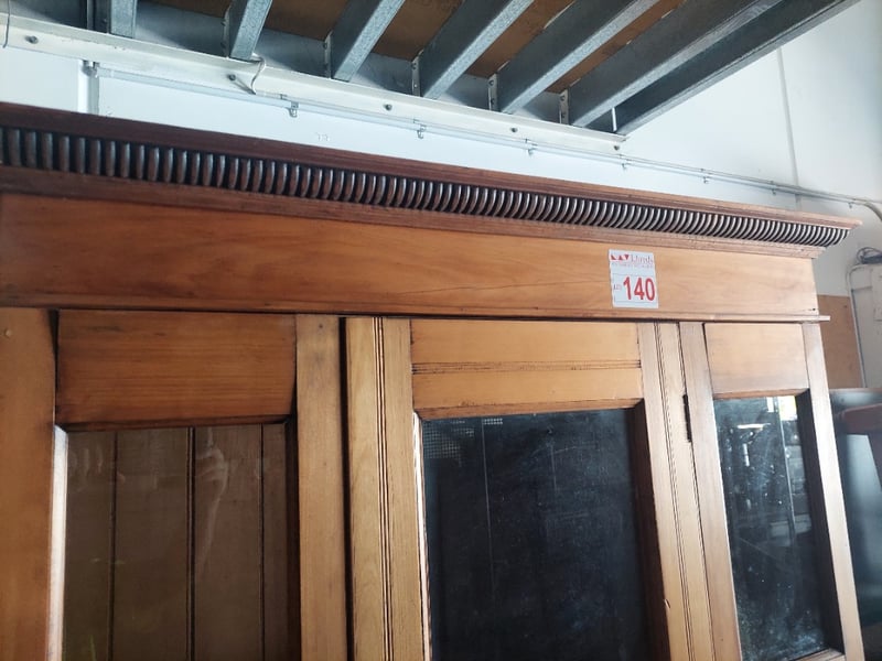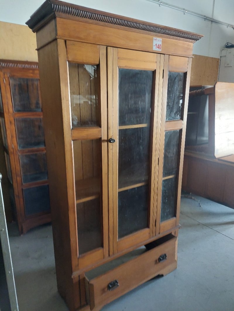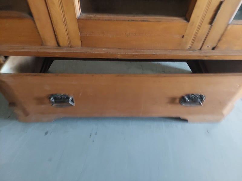 Timber Display Cabinet, 3 Glass Doors, 1 Draw Note Bottom is Missing Dimensions H205cm x W105cm x D43cm