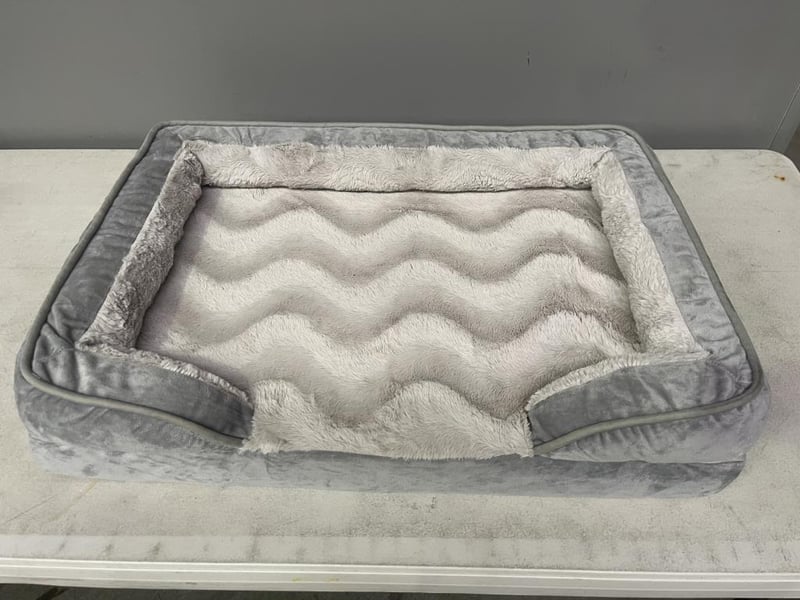 Furhaven Pet Dog Bed Cooling Gel Memory Foam Velvet Waves Perfect Comfort Traditional Sofa-Style Medium - Granite Gray - REFURBISHED WORKING EXCELLENT CONDITION (NO BOX)
