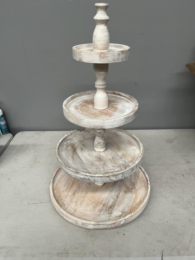 RRP $129 Wooden 4 Tier Stand 38x38x66cm in White Ash - REFURBISHED WORKING VERY GOOD CONDITION (SOME WOOD BROKEN REFER TO PHOTO)
