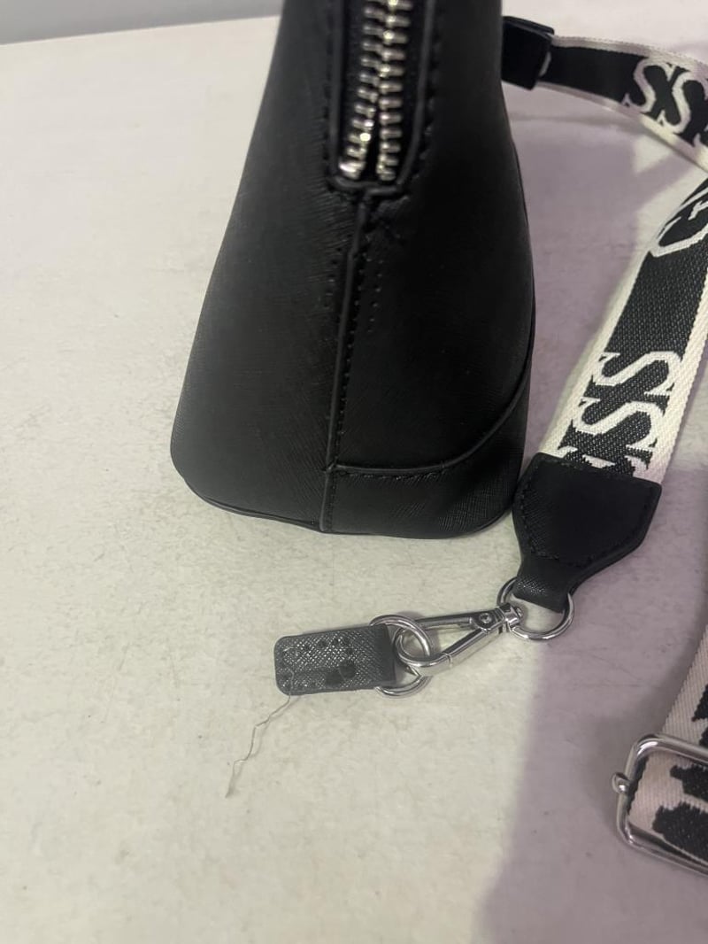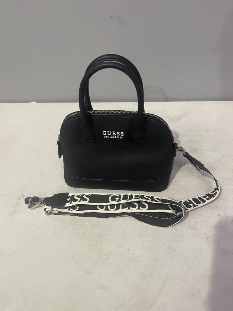 RRP $159 Guess Berkton Dome Satchel Bag - Black - DISPLAY STOCK MINOR USE (STRAP BROKEN REFER TO PHOTO)