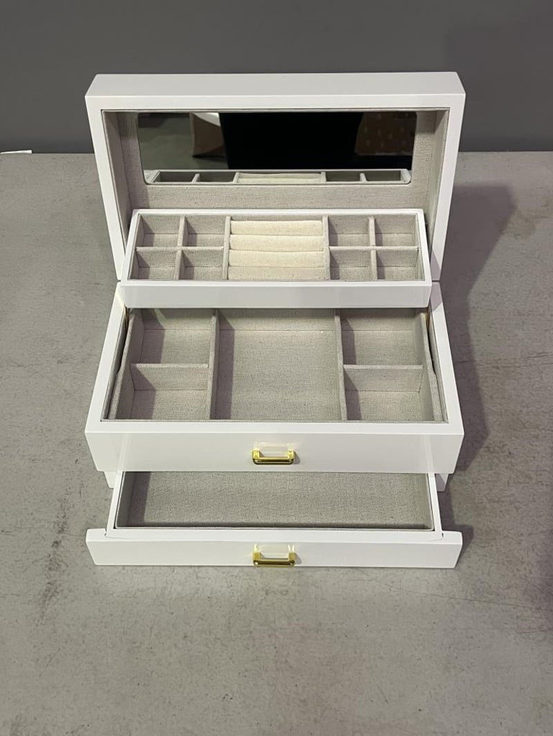 RRP $109 Design Studio Multi Drawer Jewellery Box - White - DISPLAY STOCK MINOR USE (CRACK ON BOTTOM DRAW REFER TO PHOTO)