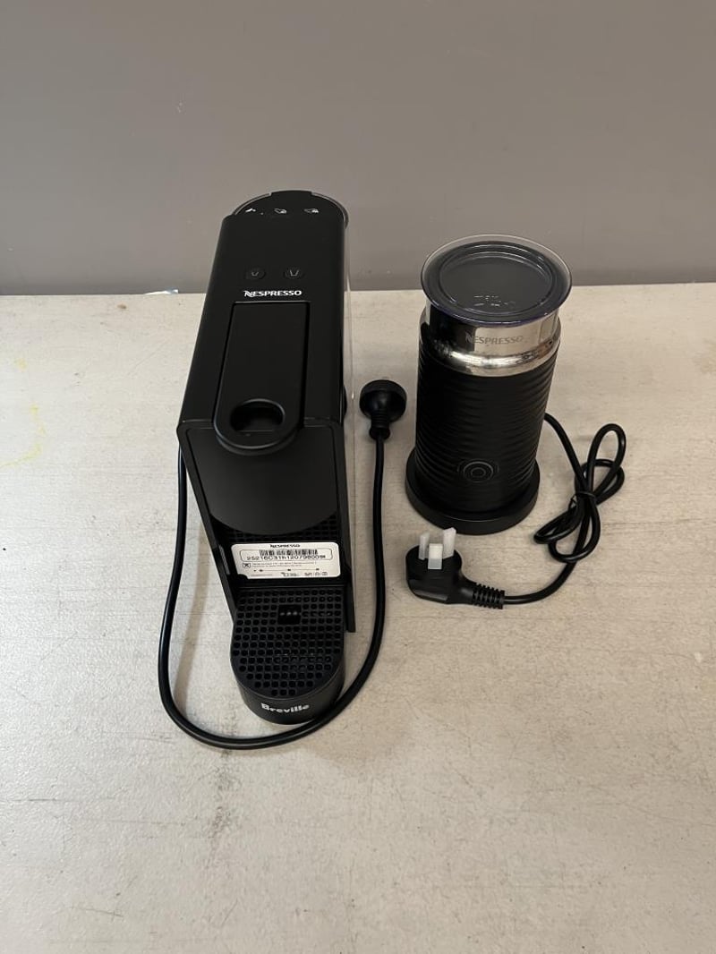 RRP $309 Nespresso Essenza Mini Coffee Machine by Breville Bundle with Aeroccino3 Milk Frother (BEC250BLK) - Black - REFURBISHED WORKING EXCELLENT CONDITION