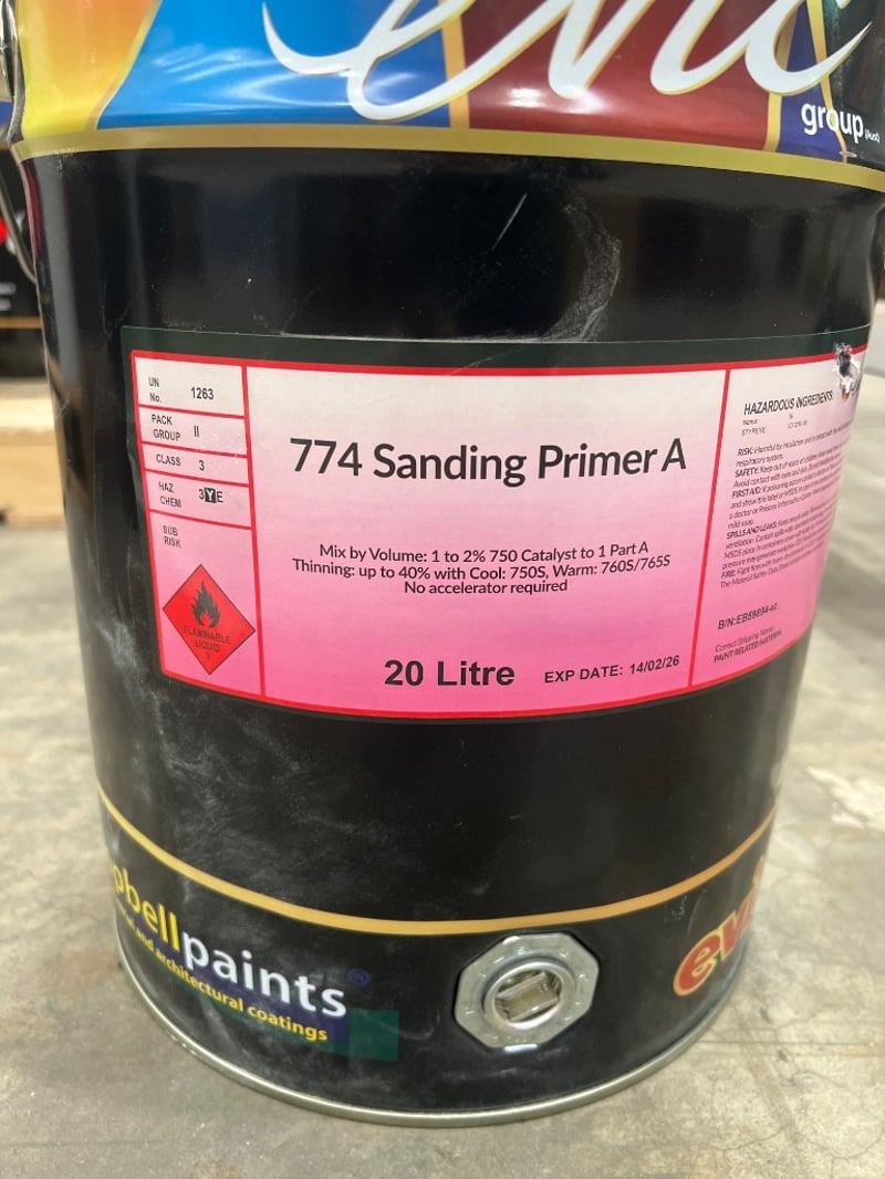 774 sanding primer A only, evic group, 20L Tin bid per litre, must take 20L