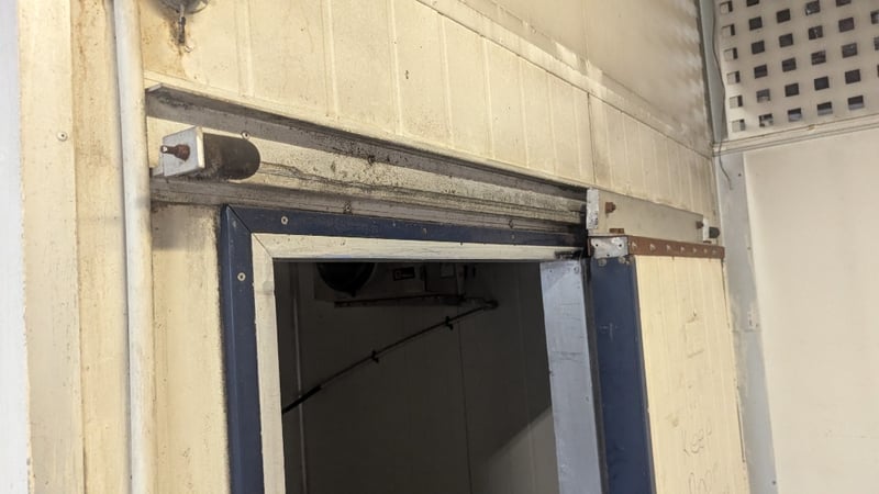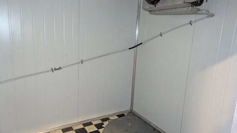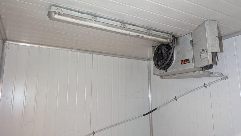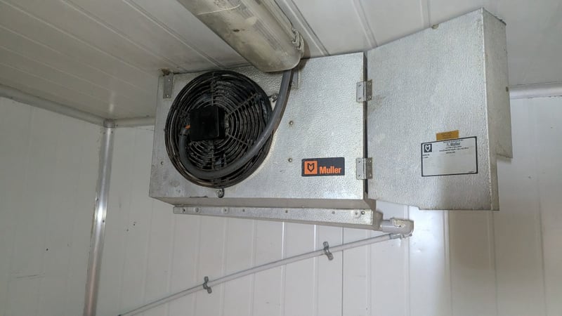 Retacom Cool Room, Sliding Door, Muller Motor, Dimensions: Outside: 240cm(H)×240cm(W)×240cm(D), Inside: 225cm(H)×225cm(W)×225cm(D)Note: Buyers Responsibility for Safe Removal, Labour and Transport of Goods, Qualified Electrician Required for Disconnection of Hardwired Power