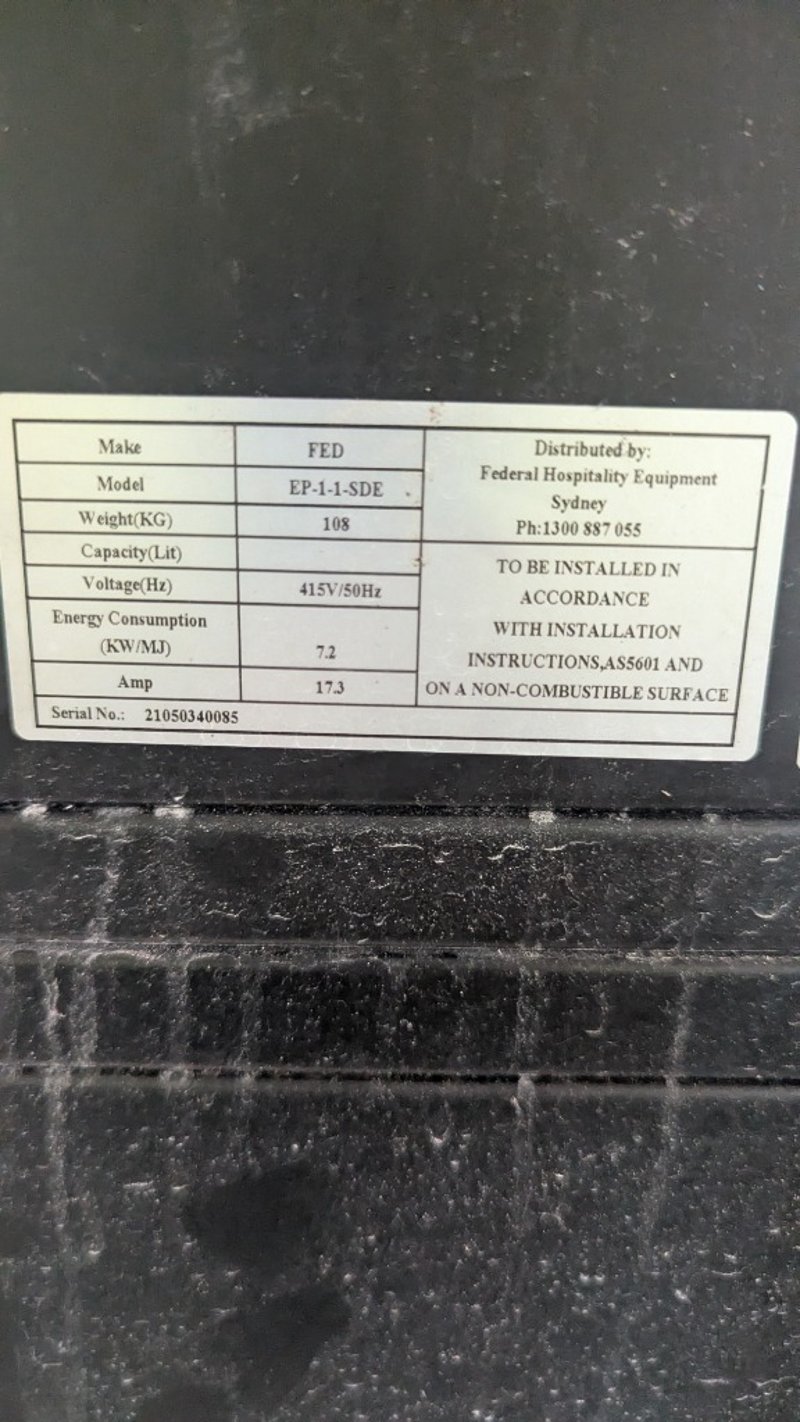 Pizza Oven, FED, Model: EP-1-1-SDE, Serial No: 21050340085, 3 Phase Power, On Mobile Stand, Dimensions: 168cm(H)×119cm(W)×82cm(D)Note: Buyers Responsibility for Safe Removal, Labour and Transport of Goods