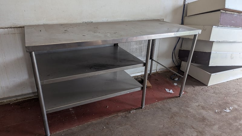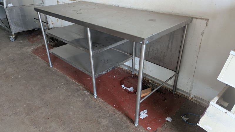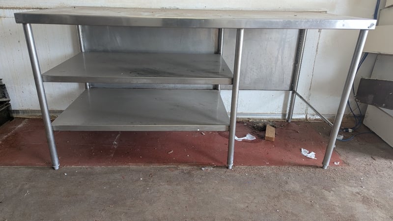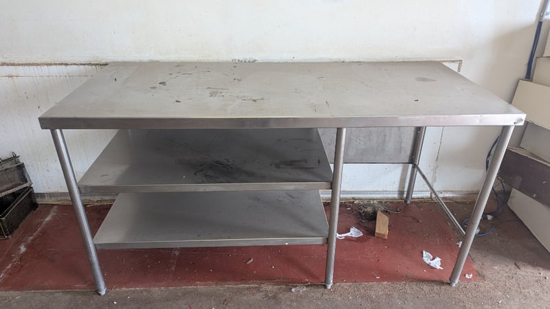 Stainless Steel Work Bench, Large Work Space, 2 Shelves, Dimensions: 92cm(H)×180cm(W)×80xm(D)Note: Buyers Responsibility for Safe Removal, Labour and Transport of Goods