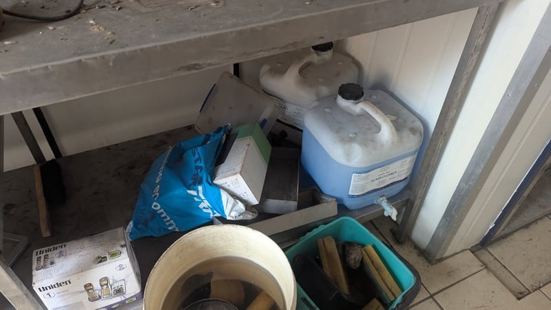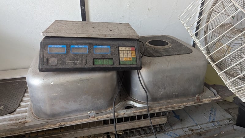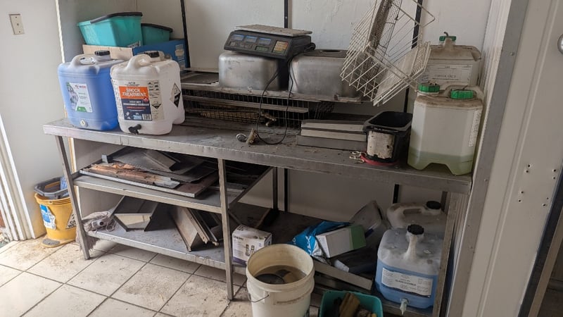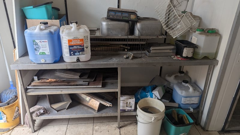 Metal Bench with Contents, Including Scales, Sink, Chemicals and More, Quantity Per Lot