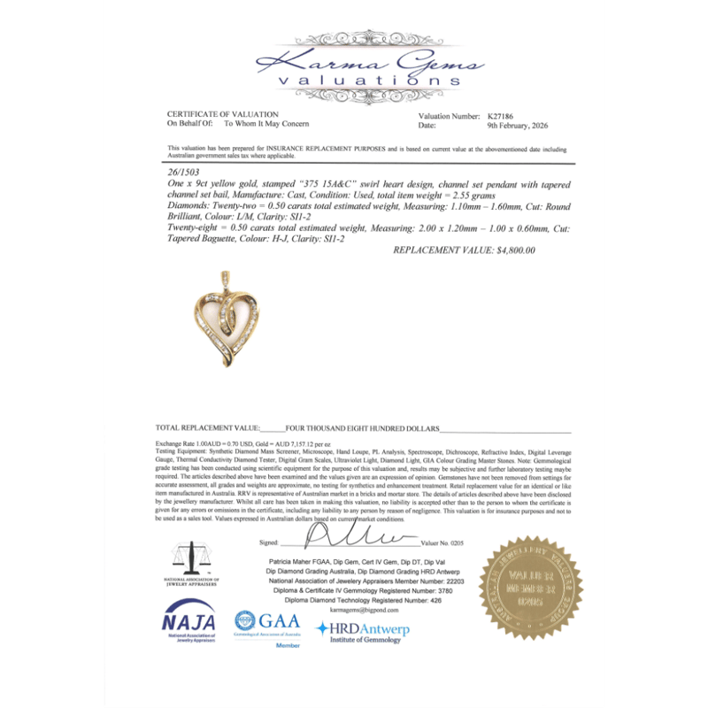 This valuation has been conducted by an independent third-party professional. The valuation amount is an assessment by the issuing valuer and does not reflect the auction value of the item.