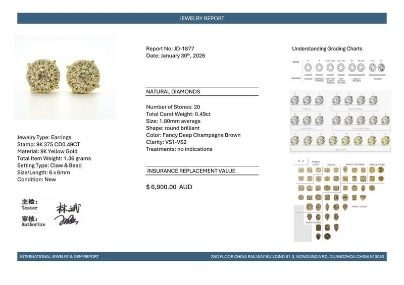 9CT YELLOW GOLD FANCY CHAMPAGNE BROWN DIAMOND HALO STUD EARRINGS
