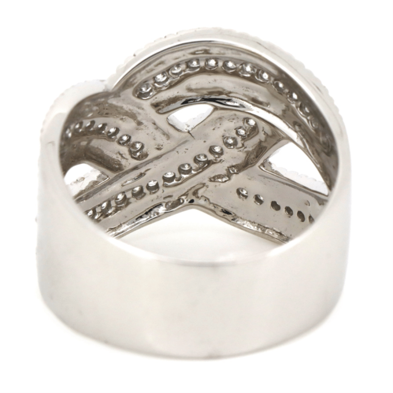 14K WHITE GOLD AND DIAMOND, BRAIDED RING.