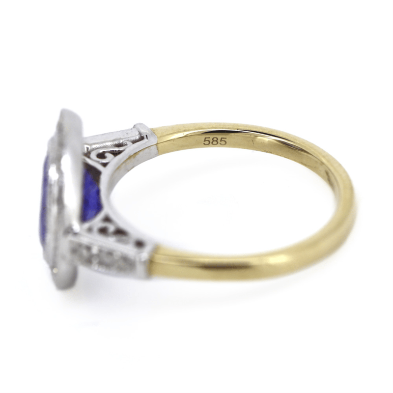14K YELLOW GOLD, TANZANITE AND DIAMOND, HALO RING. The Centre Features, One Oval Faceted Cut, Medium-Dark Violet Blue, Tanzanite (2.05Ct, Visible Inclusions), Bezel Set In White Gold. Surrounding The Centre In A Halo And Decorating The Shoulders Are, 30 Round Brilliant Cut, Diamonds (0.43Ct Tdw, I-K Colour, Si2-P2 Clarity), Bead Set. The Centre Setting Has Been 14K White Gold Rhodium Plated, To Achieve A Two-Tone Effect. Ring Size N 1/2. Valuations Provided by an Independent Third-Party Professional Not Directly Associated With Lloyds Auctions at AUD $$7,500.00This valuation has been conducted by an independent third-party professional. The valuation amount is an assessment by the issuing valuer and does not reflect the auction value of the item. Any inquiries regarding the valuation should be directed to the issuing valuer (refer to contact details on the certificate), as Lloyds Auctions has no affiliation or influence over the valuation, the valuer, or the stated amount. Condition: Good - Refer Images 0645945+1443