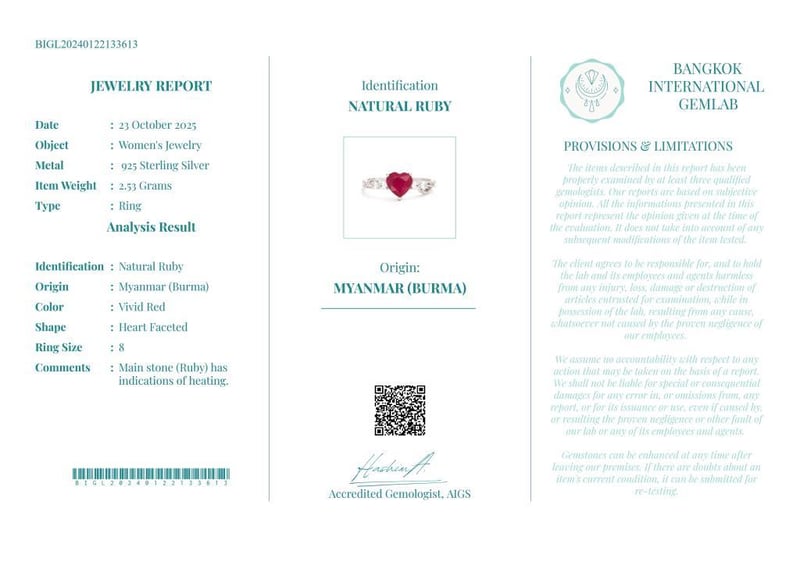Comments : Main Stone (Ruby) Has Indications Of Heating.