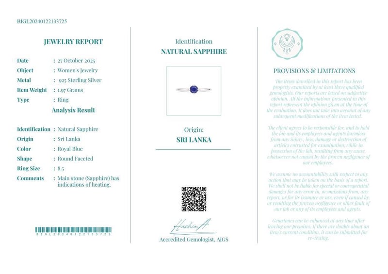 Comments : Main Stone (Sapphire) Has Indications Of Heating.