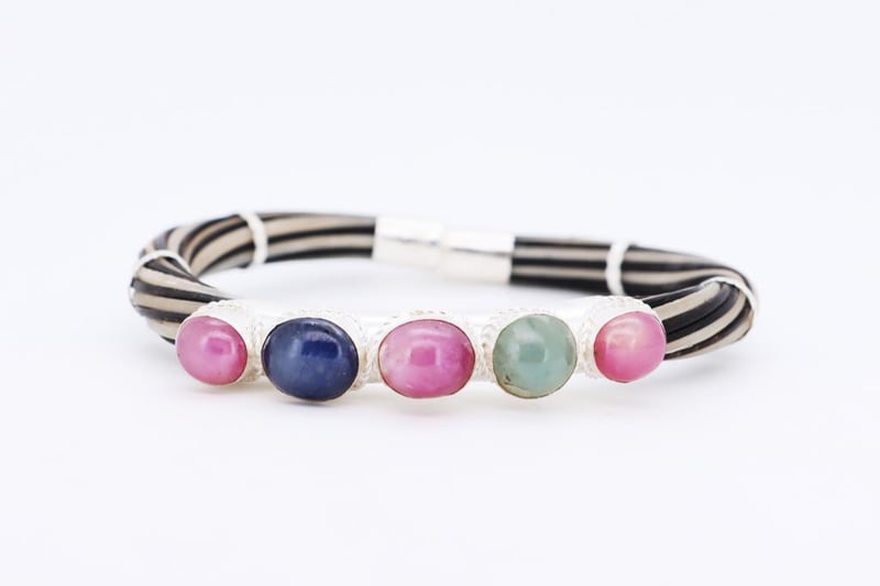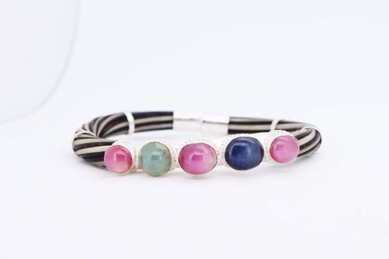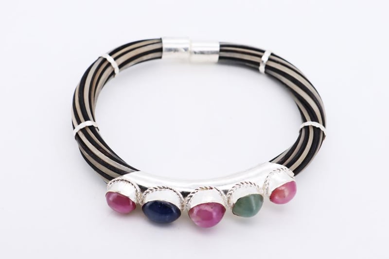 NATURAL EMERALD, RUBY & SAPPHIRE BANGLE ON 925 SILVER - WITH CERTIFICATE