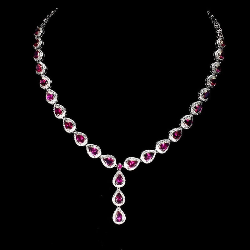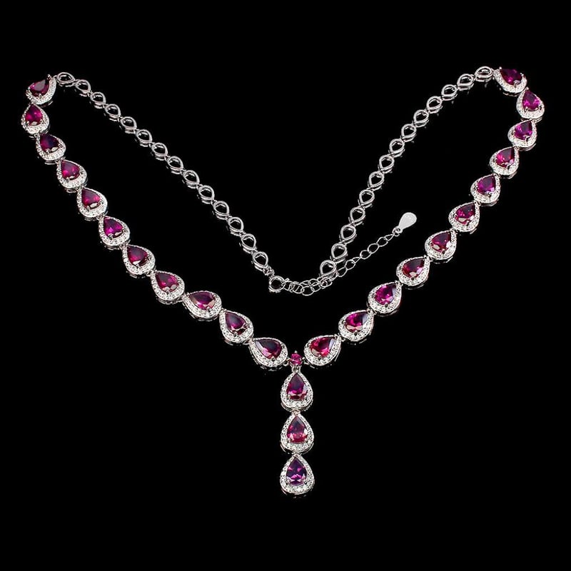 NATURAL RHODOLITE GARNET TENNIS NECKLACE