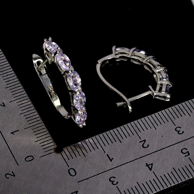 Natural Tanzanite Earrings. Made In Solid Sterling Silver And Plated In14K White Gold. Features Natural Violetish Blue Tanzanite/. Earrings Measure 24X3Mm