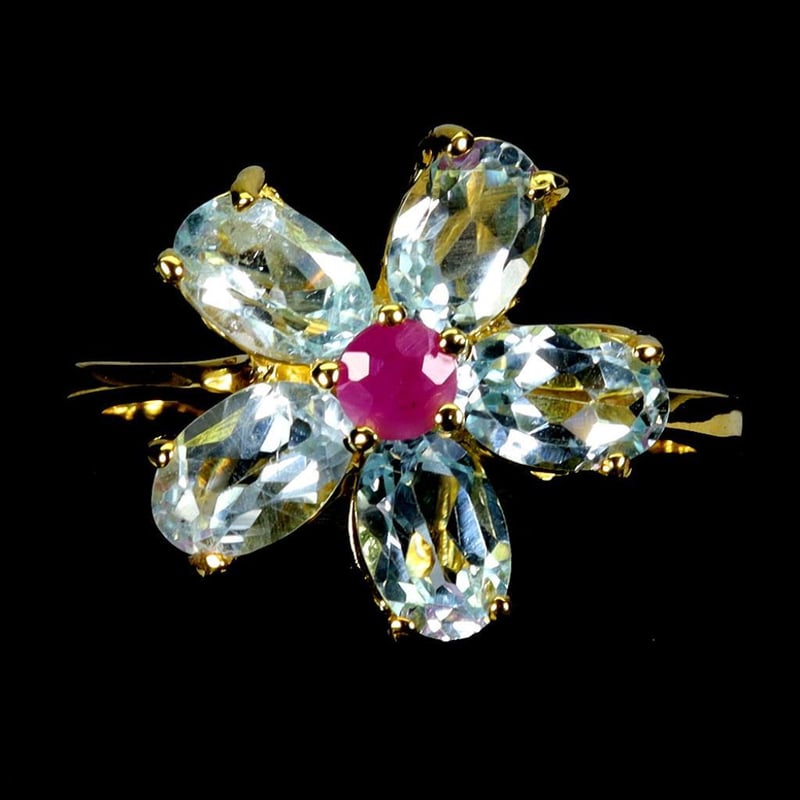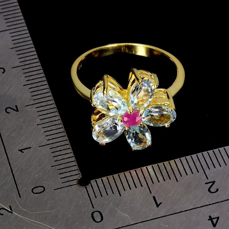 Natural Ruby & Topaz Ring. Made In Solid Sterling Silver And Plated In14K Yellow Gold. Features Natural Red Rubies And Natural Sky Blue Topaz.