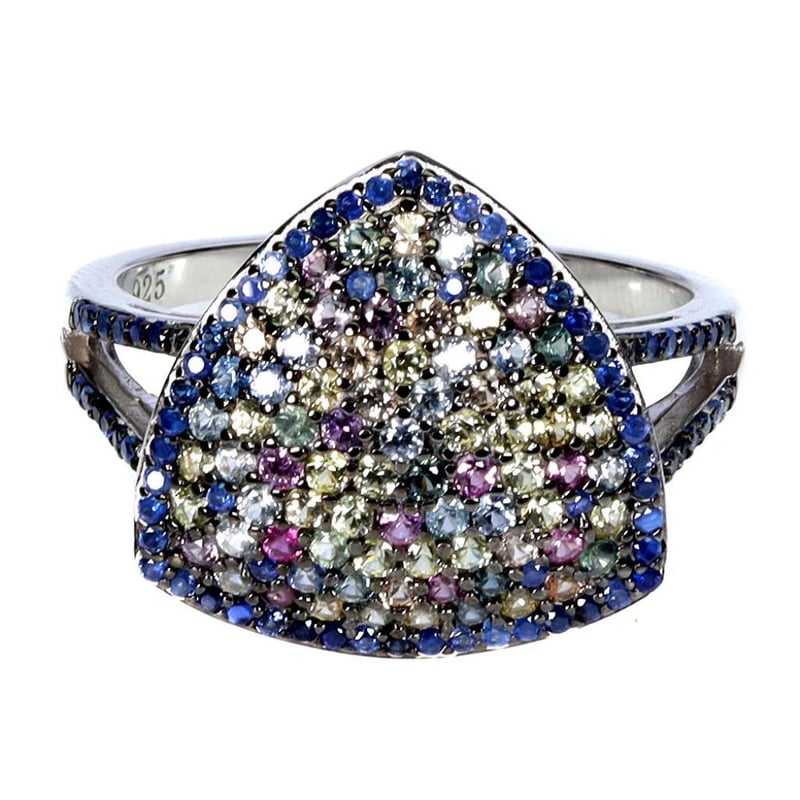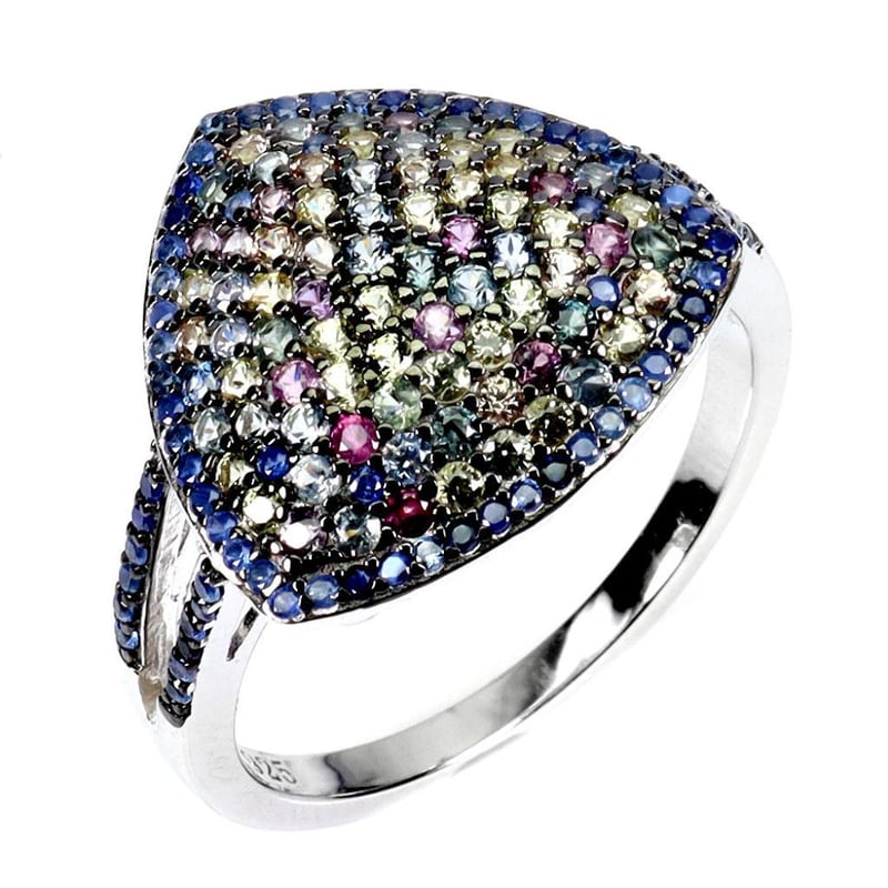 NATURAL DIAMOND CUTR SAPPHIRE RING. Natural Diamond Cut Sapphire Ring. Made In Solid Sterling Silver And Plated In14K White Gold. Features Natural Fancy Diamond Cut Sapphires. Ring Size 8.5 Condition: Good - Refer Images 0488483+10