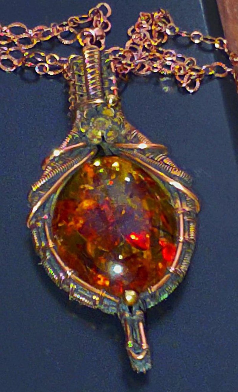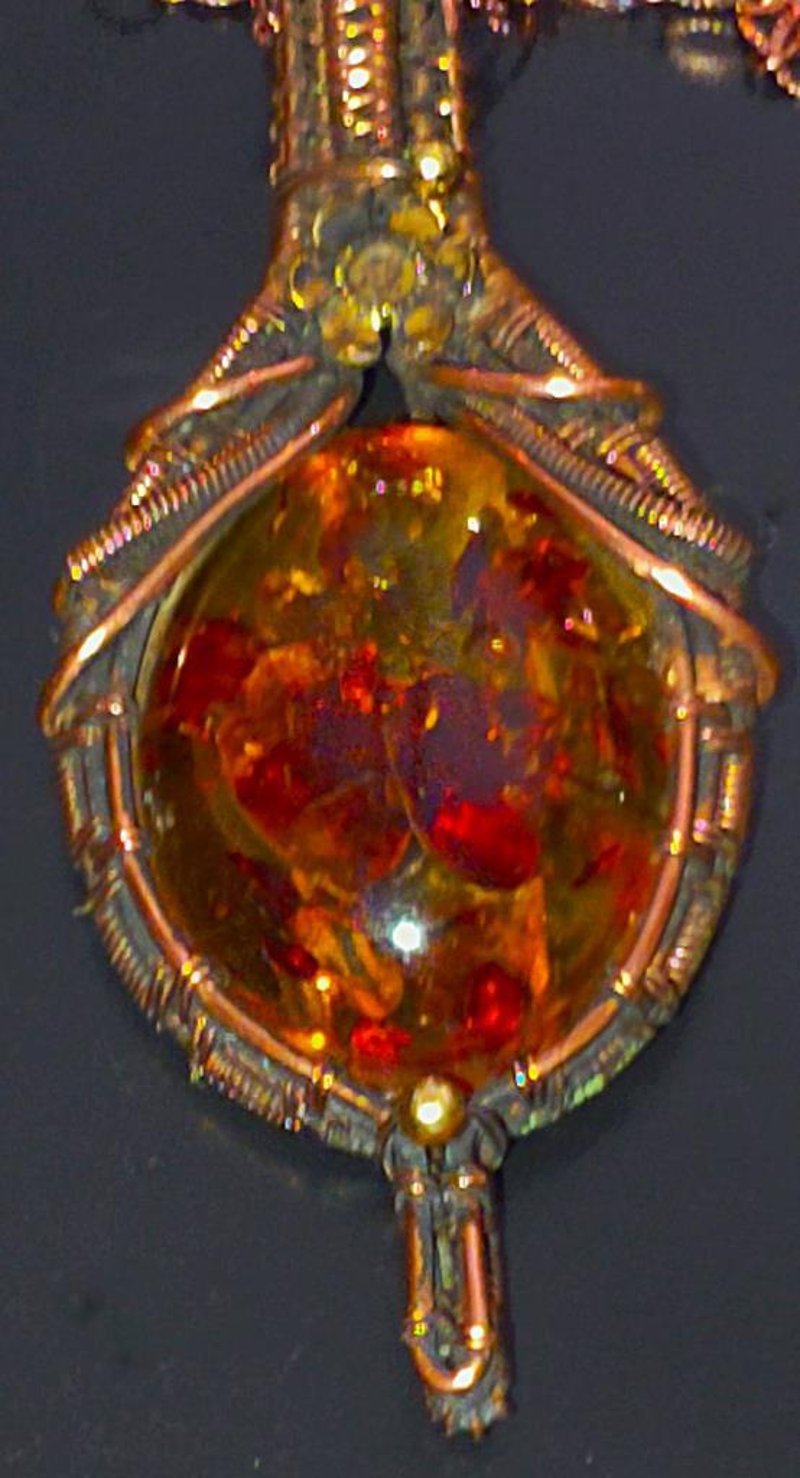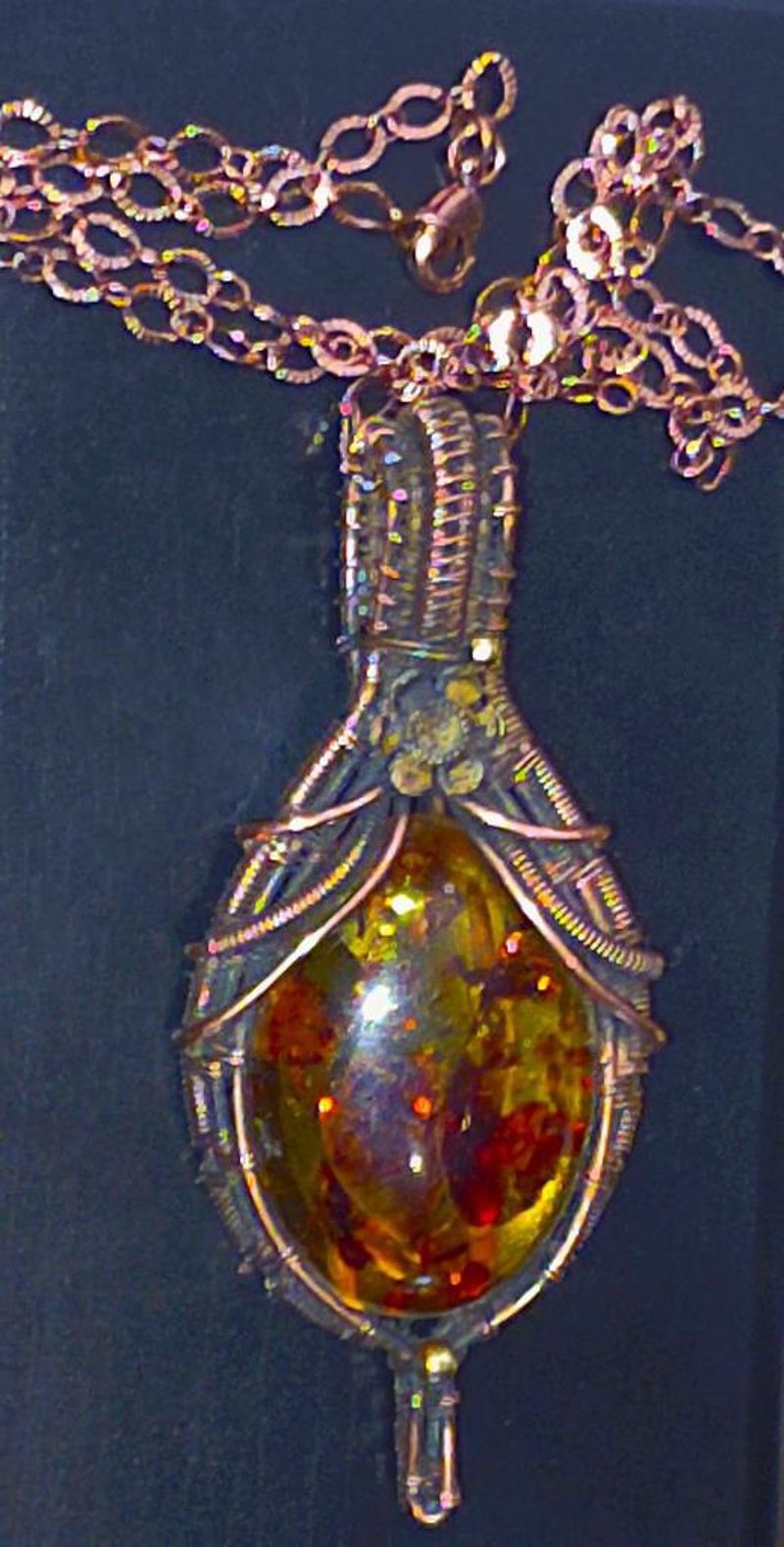 129 TCW BALTIC AMBER WIRE WRAPPED PENDANT AND CHAIN