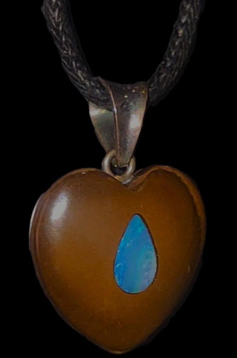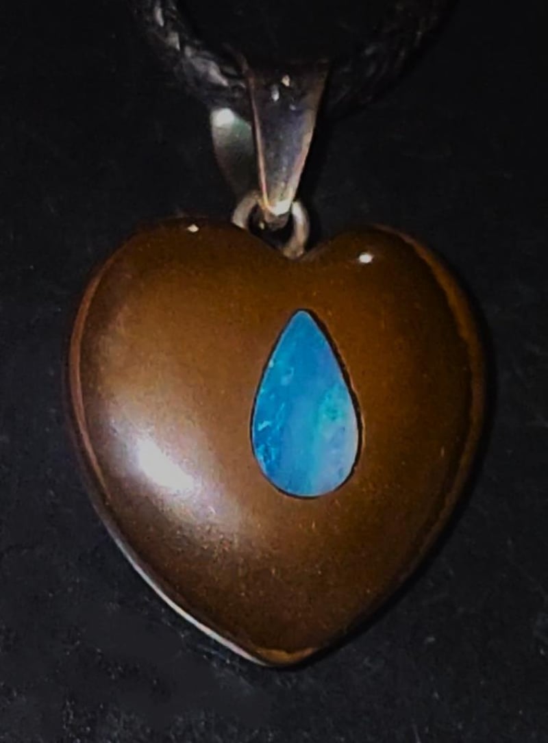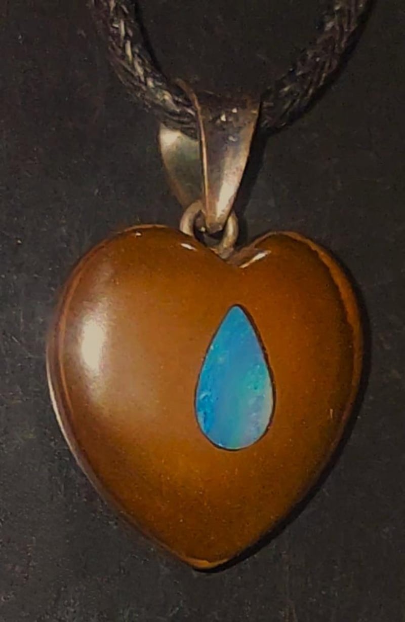 26 CARATS CORDED BOULDER OPAL HEART PENDANT WITH A COOBER PEDY CRYSTAL OPAL INLAY