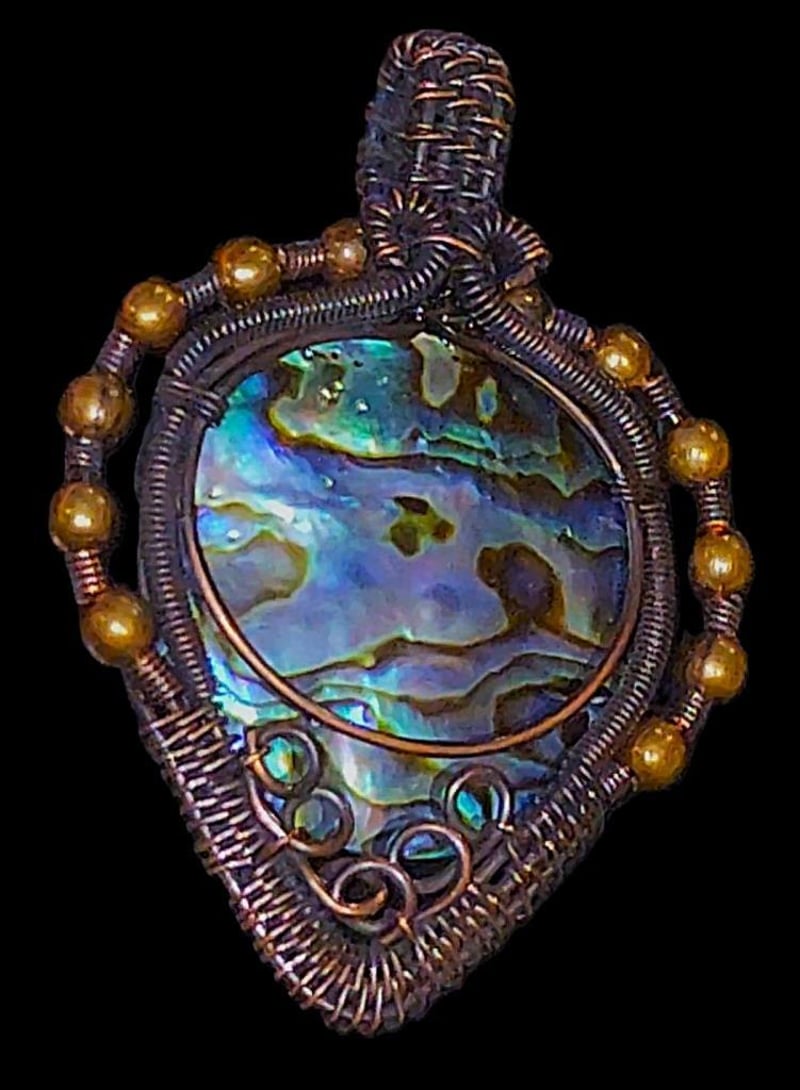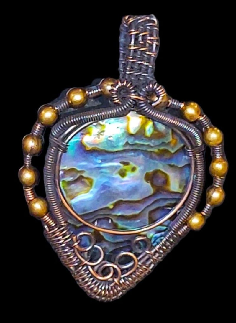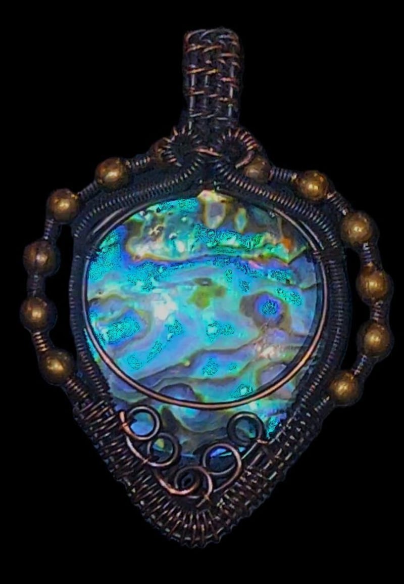 62 CARATS OPALISED SHELL AND WIRE WRAPPED PENDANT