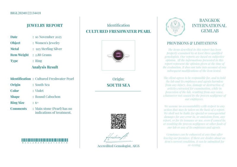Comments : Main Stone (Pearl) Has No Indications Of Treatment.