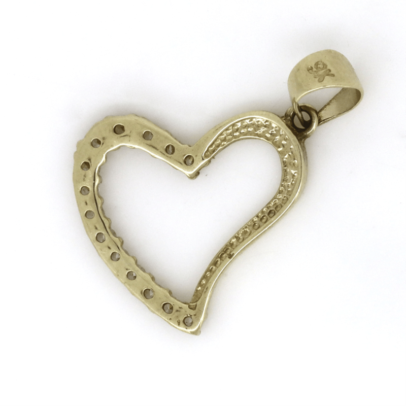 9K YELLOW GOLD AND CUBIC ZIRCONIA, HEART SHAPED PENDANT.