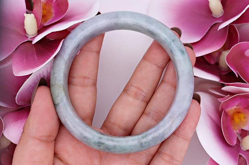 NATURAL BURMESE JADE BANGLE ON 925 SILVER - WITH CERTIFICATE