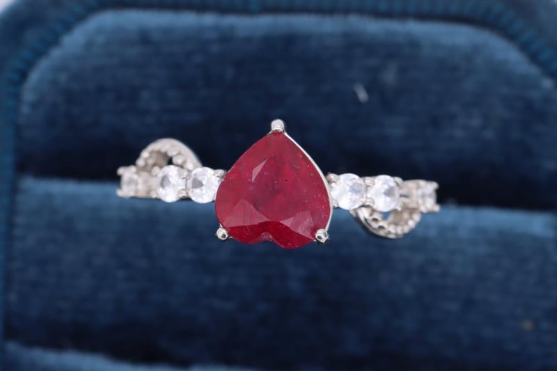 NATURAL BURMESE RUBY RING ON 925 SILVER - WITH CERTIFICATE Gemstone : Natural Burmese RubyCertificate Number : Bigl20240122133611Item Total Weight : 1.81 GramsGemstone Color : Vivid RedShape : Heart FacetedMeasurement/Size : AdjustableComments : Main Stone (Ruby) Has Indications Of Heating. ✻ Verify Report Online At Www.Bangkokinternationalgemlab.Co Condition: Good - Refer Images 01611167+5