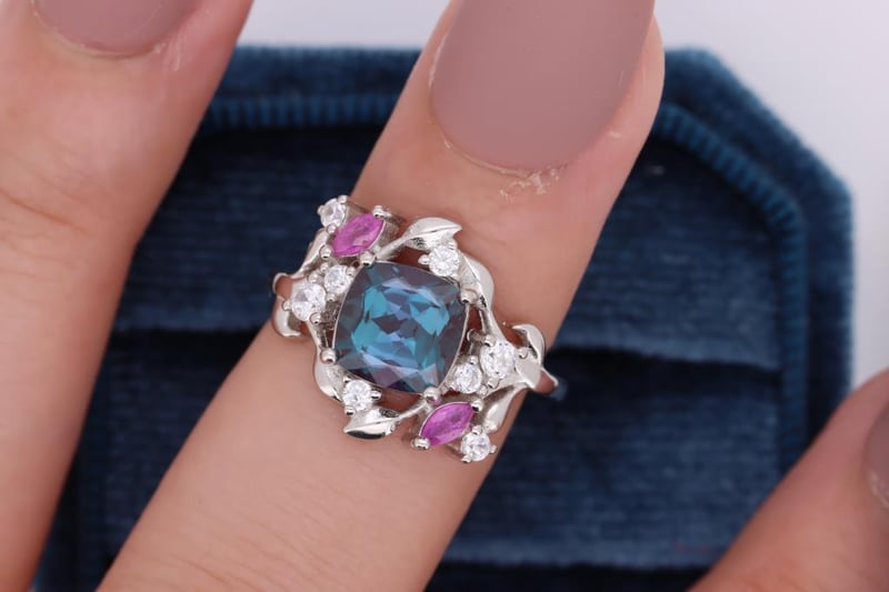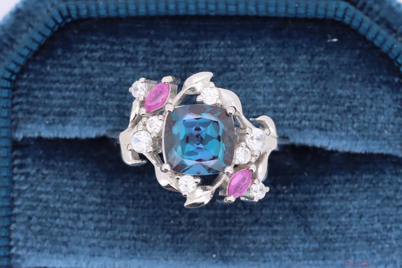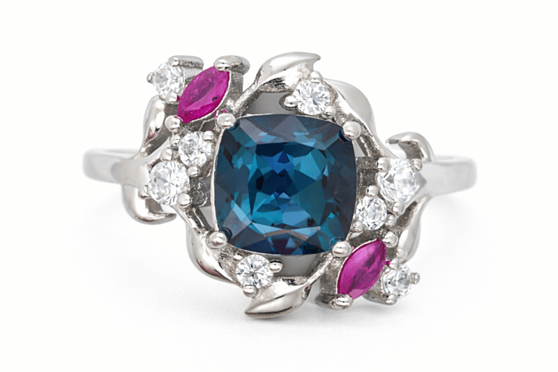 LAB GROWN ALEXANDRITE & NATURAL RUBY RING ON 925 SILVER - WITH CERTIFICATE