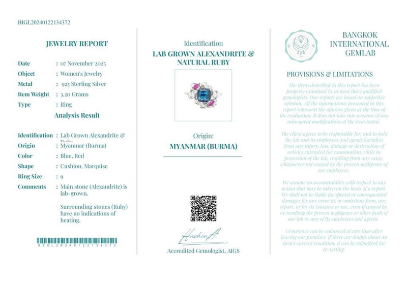 Comments : Main Stone (Alexandrite) Is Lab-Grown.