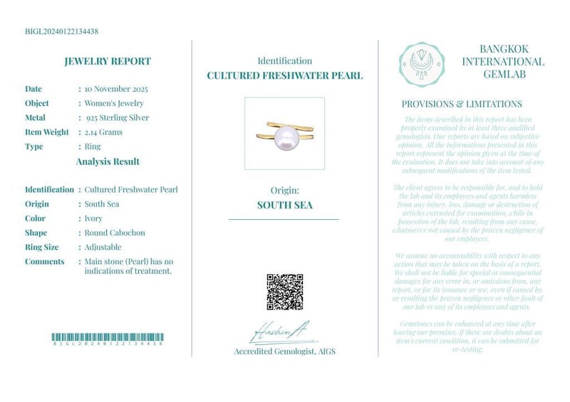 Comments : Main Stone (Pearl) Has No Indications Of Treatment.