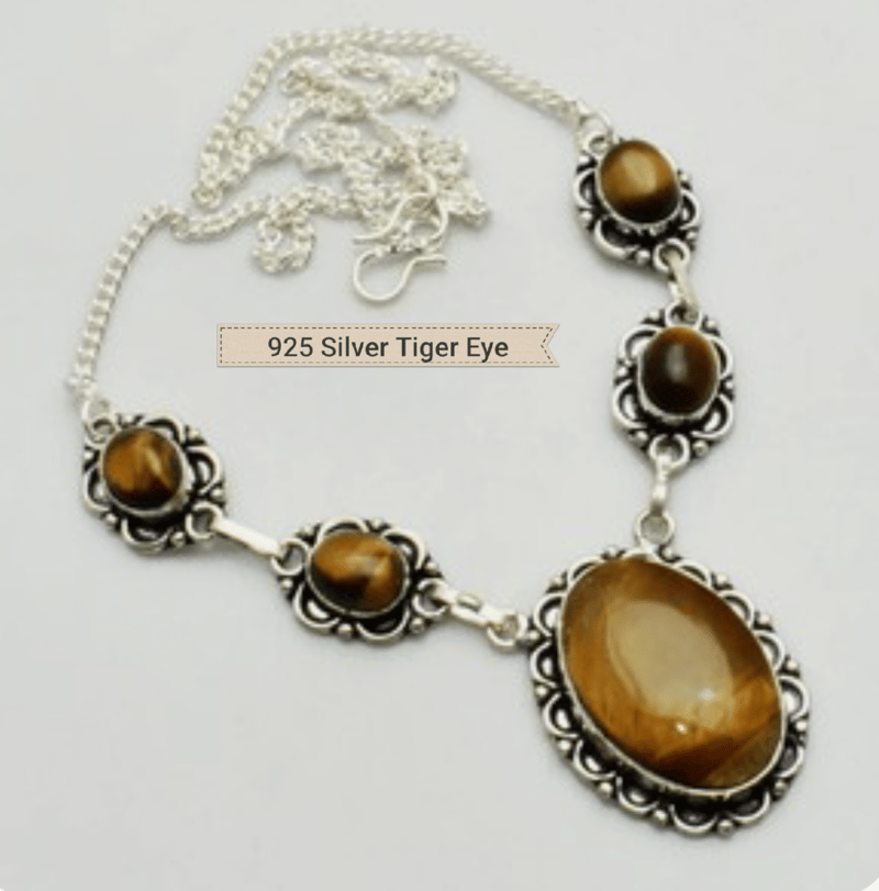 925 SILVER NECKLACE WITH TIGERS EYES STONES