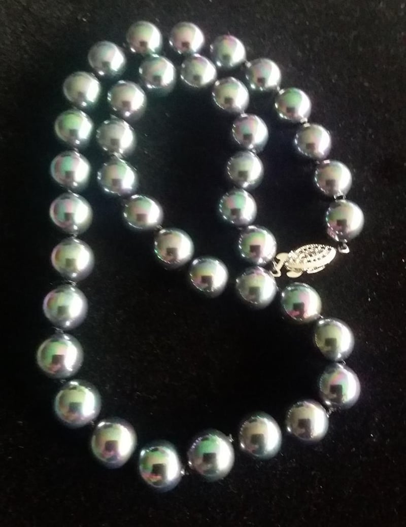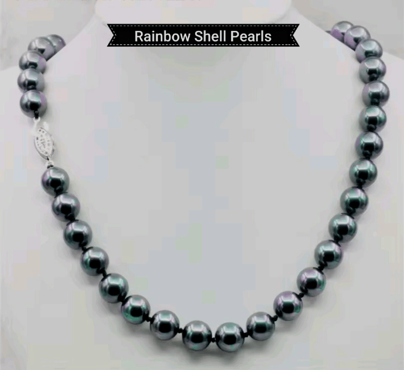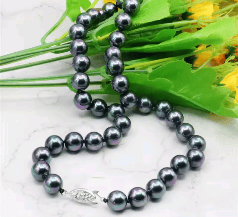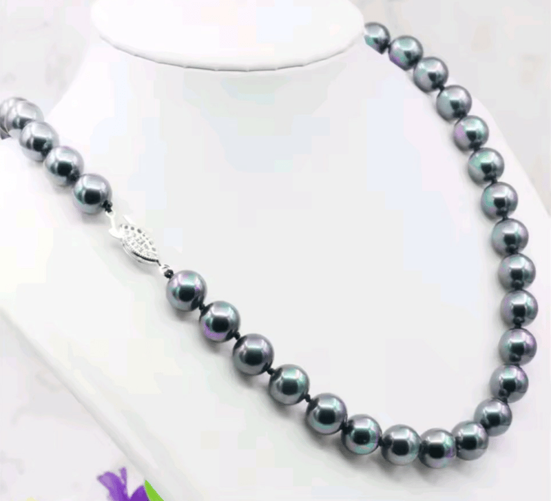 RAINBOW BLACK 10MM SEA SHELL PEARL NECKLACE WITH SILVER CLASP