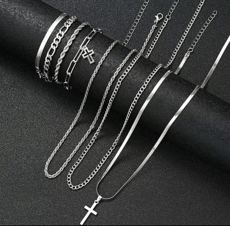 7 PIECE SET OF STAINLESS STEEL UNISEX CHAINS AND BRACELETS SET