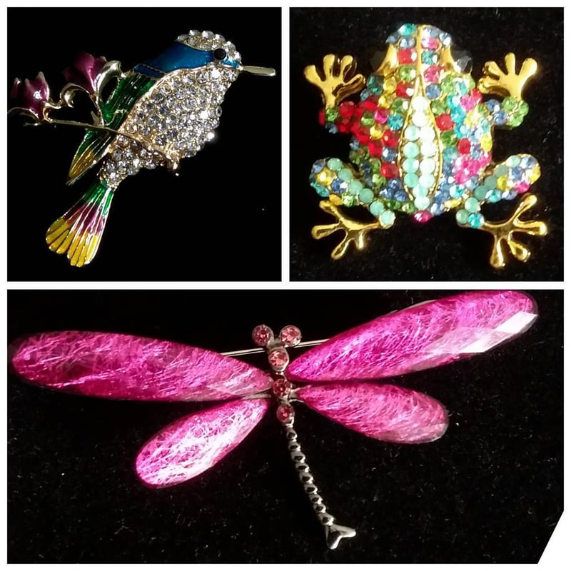 3 ASSORTED COLLECTIBLE CRYSTAL AND ENAMEL BROOCHES Condition: Good - Refer Images 0163058+27FC