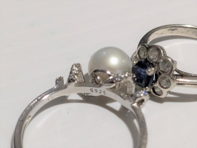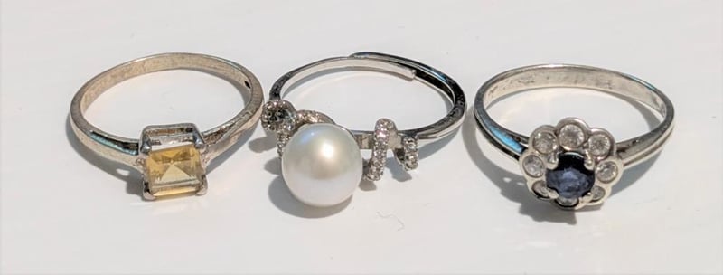 STERLING SILVER RINGS WITH YELLOW & BLUE STONES & PEARLAll Marked 925Condition: Good - Refer To Images587852+10