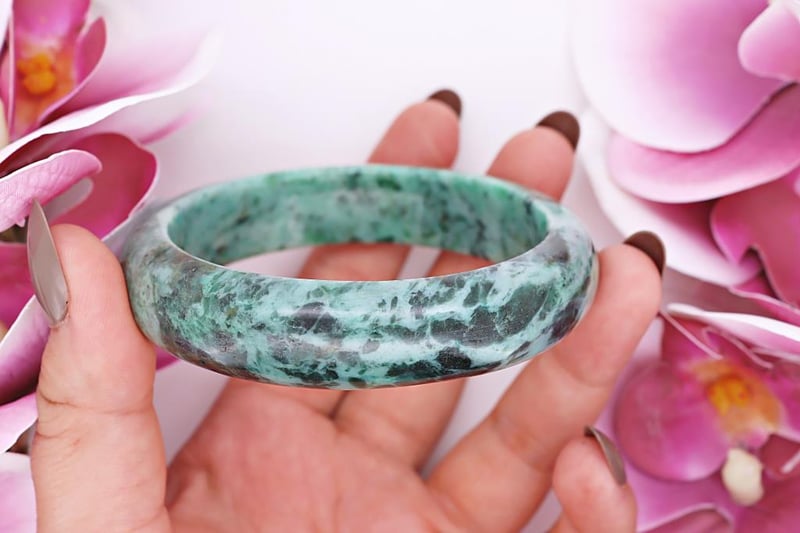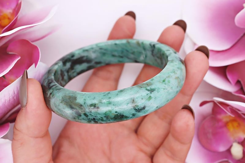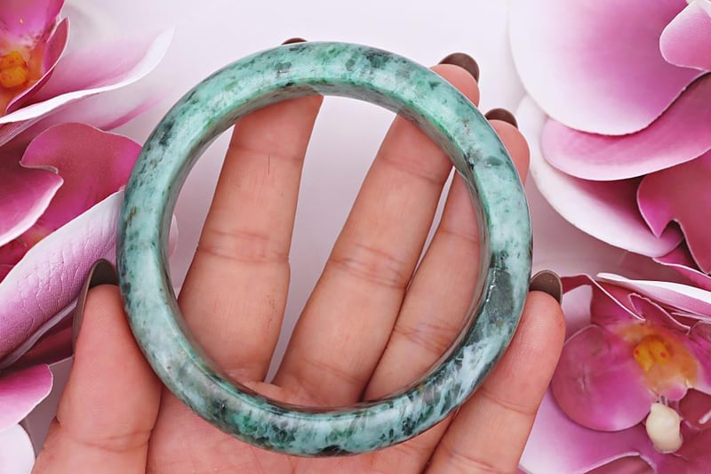 NATURAL BURMESE JADE BANGLE ON 925 SILVER - WITH CERTIFICATE