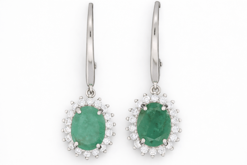 NATURAL ZAMBIAN EMERALD EARRINGS ON 925 SILVER - WITH CERTIFICATE