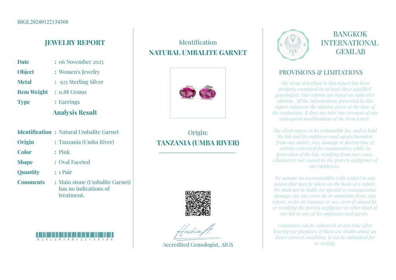Comments : Main Stone (Umbalite Garnet) Has No Indications Of Treatment.