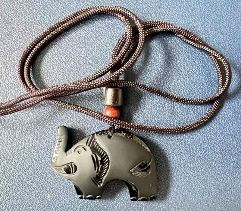 BLACK OBSIDIAN ELEPHANT PENDANT NECKLACE Total Item Weight: 13.24gms Size: 33cms Dimensions: Lenth: 42.37mmWidth: 29.57mmThickness: 8.87mmmms Gemstone: Natural Obsidian Natural Black Obsidian With A Clean, Deep Black Tone.Polished And Matte Surfaces Are Thoughtfully Combined To Highlight The Carved Lines, Adding Depth, Contrast, And A Refined Texture. Condition: Good - Refer Images 0584463+4