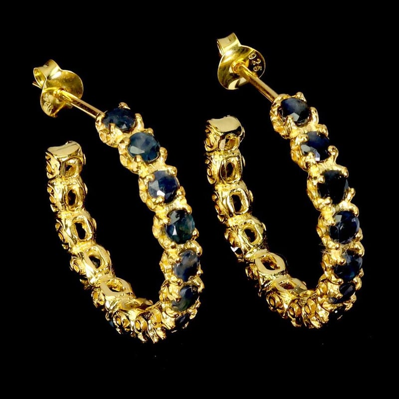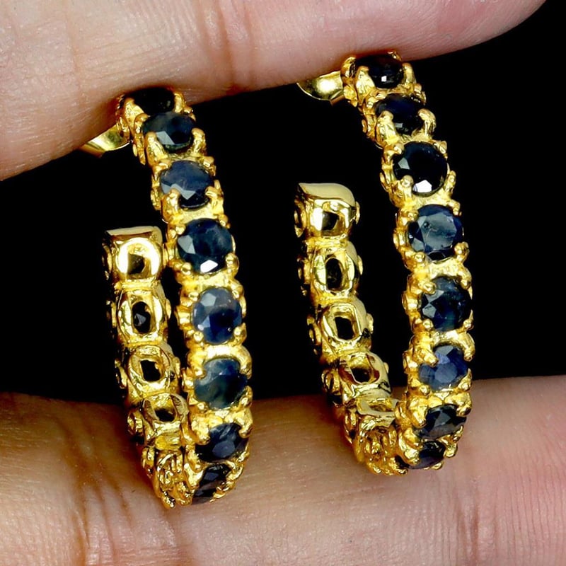 Natural Midnight Blue Sapphire Hoop Earrings. Made In Solid Sterling Silver And Plated In14K Yellow Gold. Features Natural Midnight Blue Sapphires. Earrings Measure 24.0 X 4.0 Mm.